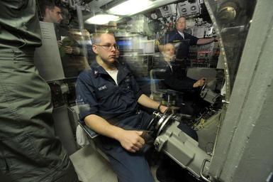 Keywords: US Navy 090321-N-8273J-607 Helmsmen Sonar Technician 3rd Class Zach Howe watches a depth gage aboard the Los Angeles-class submarine USS Annapolis (SSN 760) during a stationary ascent through approximately three feet of ice in.jpg en ARCTIC OCEAN March 21 2009 Helmsmen Sonar Technician 3rd Class Zach Howe watches a depth gage aboard the Los Angeles-class submarine USS Annapolis SSN 760 during a stationary ascent through approximately three feet of ice in the Arctic Ocean Annapolis and the Los Angeles-class submarine USS Helena SSN 725 are participating in ICEX 2009 to operate and train in the challenging and unique environment that characterizes the Arctic region U S Navy photo by Mass Communication Specialist 1st Class Tiffini M Jones/Released 2009-03-21 090321-N-8273J-607 Navy http //www navy mil/view_image asp id 69908 U S Navy photo by Mass Communication Specialist 1st Class Tiffini M Jones PD-USGov-Military-Navy USS Annapolis SSN-760 Submarine interiors