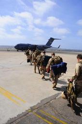 | Keywords: US Navy 090326-N-8878B-021 Members assigned to Explosive Ordnance Disposal Mobile Unit (EODMU) 3 and Explosive Ordnance Disposal Support Unit (EODSU) 1 board a C-130 transport aircraft to deploy to the Middle East.jpg en SAN DIEGO March 26 2009 Members assigned to Explosive Ordnance Disposal Mobile Unit EODMU 3 and Explosive Ordnance Disposal Support Unit EODSU 1 board a C-17 Globemaster III transport aircraft to deploy to the Middle East to provide command and control of Explosive Ordnance Disposal Counter-Improvised Explosive Devices Force in Afghanistan Navy explosive ordnance disposal units have been deploying for operations Iraqi Freedom and Enduring Freedom since 2001 and have been deploying mobile units as commands and control elements since 2006 supporting Operation Iraqi Freedom This will be the first Navy explosive ordnance disposal battalion deployed to support Operation Enduring Freedom U S Navy Photo by Mass Communication Specialist 2nd Class Michael C Barton/Released 2009-03-26 090326-N-8878B-021 Navy http //www navy mil/view_image asp id 70081 U S Navy Photo by Mass Communication Specialist 2nd Class Michael C Barton PD-USGov-Military-Navy Naval Base San Diego in the 2000s United States Navy Explosive Ordnance Disposal Boarding in air transport War in Afghanistan 2001-present related operations outside of Afghanistan War in Afghanistan in 2009 Boeing C-17 Globemaster III Explosive Ordnance Disposal Mobile Unit 3 |
