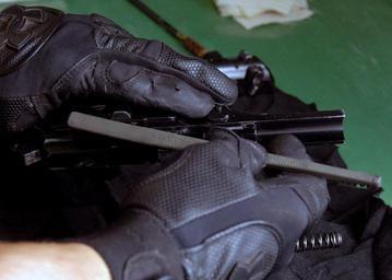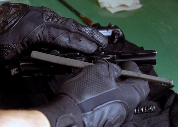 | Keywords: US Navy 090327-N-8283S-006 Gunner's Mate 3rd Class Erik Brown, from Coco Beach, Fla., uses a brush to remove carbon build-up from a 9mm M9 Beretta service pistol after a small arms live-fire exercise aboard the amphibious assau.jpg en GULF OF ADEN March 27 2009 Gunner's Mate 3rd Class Erik Brown from Coco Beach Fla uses a brush to remove carbon build-up from a 9mm M9 Beretta service pistol after a small arms live-fire exercise aboard the amphibious assault ship USS Boxer LHD 4 Boxer is the flagship of Combined Task Force 151 a multinational task force conducting counter-piracy operations to detect and deter piracy in and around the Gulf of Aden Arabian Sea Indian Ocean and Red Sea U S Navy photo by Mass Communication Specialist 2nd Class John J Siller/Released 2009-03-27 090327-N-8283S-006 Navy http //www navy mil/view_image asp id 70196 U S Navy photo by Mass Communication Specialist 2nd Class John J Siller PD-USGov-Military-Navy Aboard USS Boxer LHD-4 Gun cleaning M9 pistol |