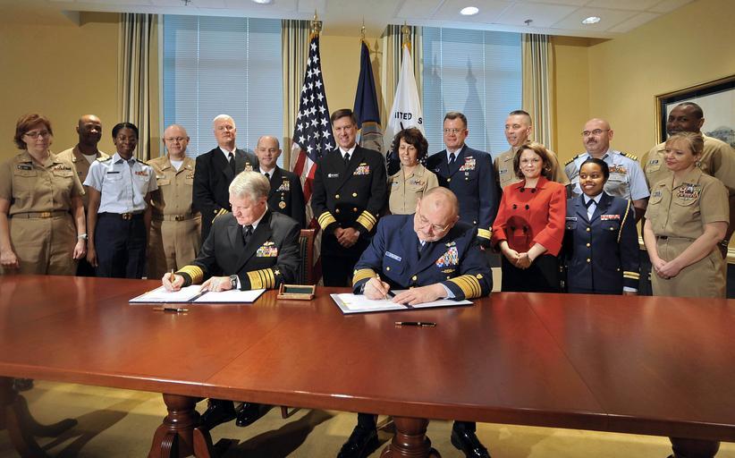 Keywords: US Navy 090401-N-8273J-003 Chief of Naval Operations (CNO) Adm. Gary Roughead, left, and Coast Guard Commandant Adm. Thad W. Allen sign a memorandum of agreement for the Safe Harbor program during a signing ceremony at the Pent.jpg en WASHINGTON April 1 2009 Chief of Naval Operations CNO Adm Gary Roughead left and Commandant of the Coast Guard Adm Thad W Allen sign a memorandum of agreement for the Safe Harbor program during a signing ceremony at the Pentagon The agreement reflects the Navy and Coast Guard's commitment to providing a lifetime of individually tailored coordinated non-medical care to seriously wounded ill or injured service members and their families U S Navy photo by Mass Communication 1st Class Tiffini M Jones/Released 2009-04-01 090401-N-8273J-003 Navy http //www navy mil/view_image asp id 70230 U S Navy photo by Mass Communication 1st Class Tiffini M Jones PD-USGov-Military-Navy Interior of The Pentagon Gary Roughead in 2009 |