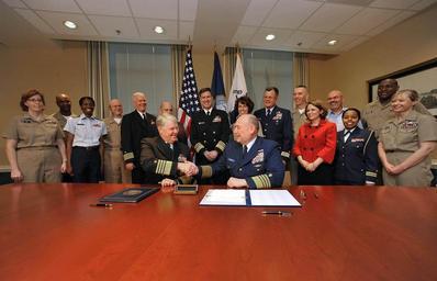 | Keywords: US Navy 090401-N-8273J-006 Chief of Naval Operations (CNO) Adm. Gary Roughead, left, and Commandant of the Coast Guard Adm. Thad W. Allen shake hands after signing a memorandum of agreement for the Safe Harbor program during a.jpg en WASHINGTON April 1 2009 Chief of Naval Operations CNO Adm Gary Roughead left and Commandant of the Coast Guard Adm Thad W Allen shake hands after signing a memorandum of agreement for the Safe Harbor program during a signing ceremony at the Pentagon The agreement reflects the Navy and Coast Guard's commitment to providing a lifetime of individually tailored coordinated non-medical care to seriously wounded ill or injured service members and their families U S Navy photo by Mass Communication 1st Class Tiffini M Jones/Released 2009-04-01 090401-N-8273J-006 Navy http //www navy mil/view_image asp id 70231 U S Navy photo by Mass Communication 1st Class Tiffini M Jones PD-USGov-Military-Navy Interior of The Pentagon Gary Roughead in 2009 |