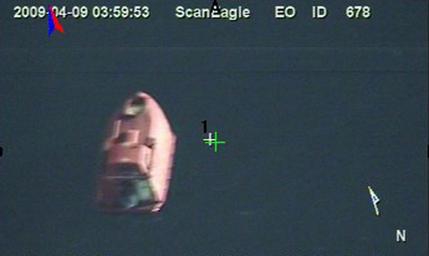 Keywords: US Navy 090409-N-0000X-939 In a still frame from video taken by the Scan Eagle unmanned aerial vehicle, a 28-foot lifeboat from the U.S.-flagged container ship Maersk Alabama is seen Thursday, April 9, 2009 in the Indian Ocean.jpg en INDIAN OCEAN April 9 2009 In a still frame from video taken by the Scan Eagle unmanned aerial vehicle a 28-foot lifeboat from the U S -flagged container ship Maersk Alabama is seen Thursday April 9 2009 in the Indian Ocean U S Navy Photo 2009-04-09 090409-N-0000X-939 Navy http //www navy mil/view_image asp id 70466 U S Navy photo PD-USGov-Military-Navy Indian Ocean Maersk Alabama lifeboat Still images from videos Photos and video from unmanned aerial vehicles |
