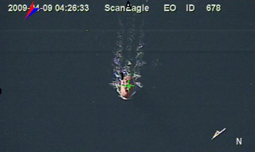 Keywords: US Navy 090409-N-0000X-619 In a still frame from video taken by the Scan Eagle unmanned aerial vehicletaken by the Scan Eagle unmanned aerial vehicle, a 28-foot lifeboat from the U.S.-flagged container ship Maersk Alabama is s.jpg en INDIAN OCEAN April 9 2009 In a still frame from video taken by the Scan Eagle unmanned aerial vehicletaken by the Scan Eagle unmanned aerial vehicle a 28-foot lifeboat from the U S -flagged container ship Maersk Alabama is seen Thursday April 9 2009 in the Indian Ocean U S Navy Photo 2009-04-09 090409-N-0000X-619 Navy http //www navy mil/view_image asp id 70462 U S Navy photo PD-USGov-Military-Navy Indian Ocean Maersk Alabama lifeboat Still images from videos Photos and video from unmanned aerial vehicles |