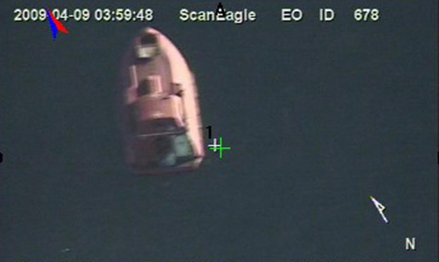 Keywords: US Navy 090409-N-0000X-934 In a still frame from video taken by the Scan Eagle unmanned aerial vehicle, a 28-foot lifeboat from the U.S.-flagged container ship Maersk Alabama is seen Thursday, April 9, 2009 in the Indian Ocean.jpg en INDIAN OCEAN April 9 2009 In a still frame from video taken by the Scan Eagle unmanned aerial vehicle a 28-foot lifeboat from the U S -flagged container ship Maersk Alabama is seen Thursday April 9 2009 in the Indian Ocean U S Navy Photo 2009-04-09 090409-N-0000X-934 Navy http //www navy mil/view_image asp id 70464 U S Navy photo PD-USGov-Military-Navy Indian Ocean Maersk Alabama lifeboat Still images from videos Photos and video from unmanned aerial vehicles |