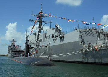 | Keywords: US Navy 090428-N-9588L-024 he Los Angeles-class attack submarine USS Toledo (SSN 769) is moored next to the Arleigh Burke-class guided-missile destroyer USS Forrest Sherman (DDG 98).jpg  en PORT EVERGLADES Fla April 28 2009 The Los Angeles-class attack submarine USS Toledo SSN 769 is moored next to the Arleigh Burke-class guided-missile destroyer USS Forrest Sherman DDG 98 with the Whidbey Island-class amphibious dock landing ship USS Ashland LSD 48 in the background The three naval vessels are in South Florida to participate in Fleet Week Port Everglades 2009 More than 1 000 Sailors Marines and Coast Guardsmen are participating in a number of community outreach activities April 27 to May 2 as well as enjoying the hospitality and tourism of South Florida U S Navy photo by Chief Mass Communication Specialist Dean Lohmeyer/Released 2009-04-28 090428-N-9588L-024 Navy http //www navy mil/view_image asp id 71117 U S Navy photo by Chief Mass Communication Specialist Dean Lohmeyer PD-USGov-Military-Navy Images from US Navy location Broward County Florida Aboard USS Ashland LSD-48 |