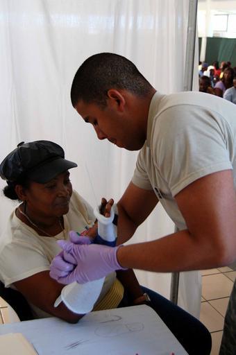 Keywords: US Navy 090508-F-7885G-021 Staff Sgt. Hugo Reiner, a physical therapy craftsman aboard the Military Sealift Command hospital ship USNS Comfort (T-AH 20), makes a wrist brace for Teresa De la Pena during a Continuing Promise 200.jpg en ST JOHN'S Antigua May 8 2009 Staff Sgt Hugo Reiner a physical therapy craftsman aboard the Military Sealift Command hospital ship USNS Comfort T-AH 20 makes a wrist brace for Teresa De la Pena during a Continuing Promise 2009 medical community service project Comfort is participating in the Continuing Promise 2009 four-month humanitarian and civic assistance mission to Latin America and the Caribbean U S Air Force photo by Airman 1st Class Danielle Grannan/Released 2009-05-08 090508-F-7885G-021 Navy http //www navy mil/view_image asp id 71481 U S Air Force photo by Airman 1st Class Danielle Grannan PD-USGov-Military-Navy Images from US Navy location St John's Antigua Aboard USNS Comfort T-AH-20 |