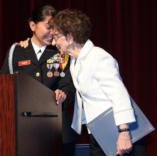 MAKE A MEME View Large Image Navy 090610-N-3135G-982 Navy Junior ROTC Cadet Cmdr. Jaqueline Duarte, valedictorian for the first graduating class from Hyman G. Rickover Naval Academy, is embraced by Eleanore Rickover, widow of Adm. Hyman G. Rickover.jpg en Ill June 10 ...