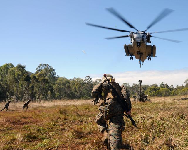 Keywords: US Navy 090719-N-0120A-487 Marines assigned to the 31st Marine Expeditionary Unit, embarked aboard the forward-deployed amphibious assault ship USS Essex (LHD 2), rush toward an M777 105mm lightweight Howitzer.jpg en SHOALWATER BAY Australia July 19 2009 Marines assigned to the 31st Marine Expeditionary Unit embarked aboard the forward-deployed amphibious assault ship USS Essex LHD 2 rush toward an M777 155mm lightweight Howitzer for rig it for lift by an MH-53E Sea Stallion helicopter assigned to the Air Combat Element of the 31st MEU as a part of exercise Talisman Saber 2009 Talisman Saber is a biennial combined training activity designed to train Australian and U S forces in planning and conducting combined operations which will help improve combat readiness and interoperability between Australian and U S forces U S Navy photo by Mass Communication Specialist 2nd Class Mark R Alvarez/Released 2009-07-19 090719-N-0120A-487 Navy http //www navy mil/view_image asp id 74089 U S Navy photo by Mass Communication Specialist 2nd Class Mark R Alvarez PD-USGov-Military-Navy Shoalwater Bay Aboard USS Essex LHD-2 Talisman Sabre 2009 M777 howitzer |
