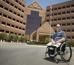 Keywords: US Navy 090812-N-7090S-213 Cryptological Technician 2nd Class Chad Kueser is recovering at the Center for the Intrepid at Brook Army Medical Cente.jpg en SAN ANTONIO Aug 12 2009 Cryptological Technician 2nd Class Chad Kueser is recovering at the Center for the Intrepid at Brook Army Medical Center in San Antonio Texas after losing both his legs in a mortar attack in Iraq Kueser is participating in the Navy Safe Harbor Program which helps him handle retirement paperwork complete his personnel records and other issues U S Navy photo by Mass Communication Specialist 2nd Class Jhi L Scott/Released 2009-08-12 090812-N-7090S-213 Navy http //www navy mil/view_image asp id 78624 U S Navy photo by Mass Communication Specialist 2nd Class Jhi L Scott PD-USGov-Military-Navy San Antonio Military Medical Center Amputees from the United States People in wheelchairs |