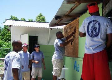 Keywords: US Navy 090825-N-6121M-005 Sailors assigned to the guided-missile frigate USS Hawes (FFG 53) make repairs to the exterior walls of the Pineapple Place Basic School.jpg en OCHO RIOS Jamaica Aug 25 2009 Sailors assigned to the guided-missile frigate USS Hawes FFG 53 make repairs to the exterior walls of the Pineapple Place Basic School during a community service project while on a port visit to Jamaica Hawes homeported in Norfolk Va is deployed to Latin America under the operational control of U S Naval Forces Southern Command conducting counter-illicit trafficking operations U S Navy photo by Lt j g Andrew J Mew/Released 2009-08-25 090825-N-6121M-005 Navy http //www navy mil/view_image asp id 75869 U S Navy photo by Lt j g Andrew J Mew PD-USGov-Military-Navy Images from US Navy location OCHO RIOS Jamaica Ocho Rios 2009 in Jamaica