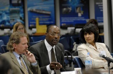 | Keywords: US Navy 090903-N-7676W-057 Dr. Sujata Millick and Dr. Jim Rohr listen as Dr. Anthony V. Junior makes a point during the Office of Naval Research STEM2Stern forum.jpg en Arlington Va Sept 3 2009 Dr Sujata Millick right acting director of research and Dr Jim Rohr left kindergarten through 12th grade research coordinator for the Space and Naval Warfare Systems Command Systems Center Pacific listen as Dr Anthony V Junior director of the Department of the Navy Historically Black Colleges and Universities/Minority Institutions Program Office makes a point during the Office of Naval Research STEM2Stern forum The series of dialogues is designed to bring together key stakeholders from the Naval Research Enterprise U S Navy photo by John F Williams/Released 2009-09-03 090903-N-7676W-057 Navy http //www navy mil/view_image asp id 75939 U S Navy photo by John F Williams PD-USGov-Military-Navy Arlington County Virginia |
