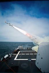 | Keywords: US Navy 090909-N-0000X-108 The Ticonderoga-class cruiser USS Princeton (CG 59) successfully launches a Block II Harpoon in the Naval Air Systems Command Sea Test Range off the coast of southern California.jpg en SAN DIEGO Sept 10 2009 The Ticonderoga-class cruiser USS Princeton CG 59 successfully launches a Block II Harpoon in the Naval Air Systems Command Sea Test Range off the coast of southern California The missile scored a direct hit on a land-based target on San Nicolas Island Calif The upgrade adds GPS capability to the missile giving it more precision and the capability to fire not only on surface ships but also on land targets U S Navy photo/Released 2009-09-10 090909-N-0000X-108 Navy http //www navy mil/view_image asp id 76380 U S Navy photo PD-USGov-Military-Navy RGM-84 Harpoon Aboard USS Princeton CG-59 |