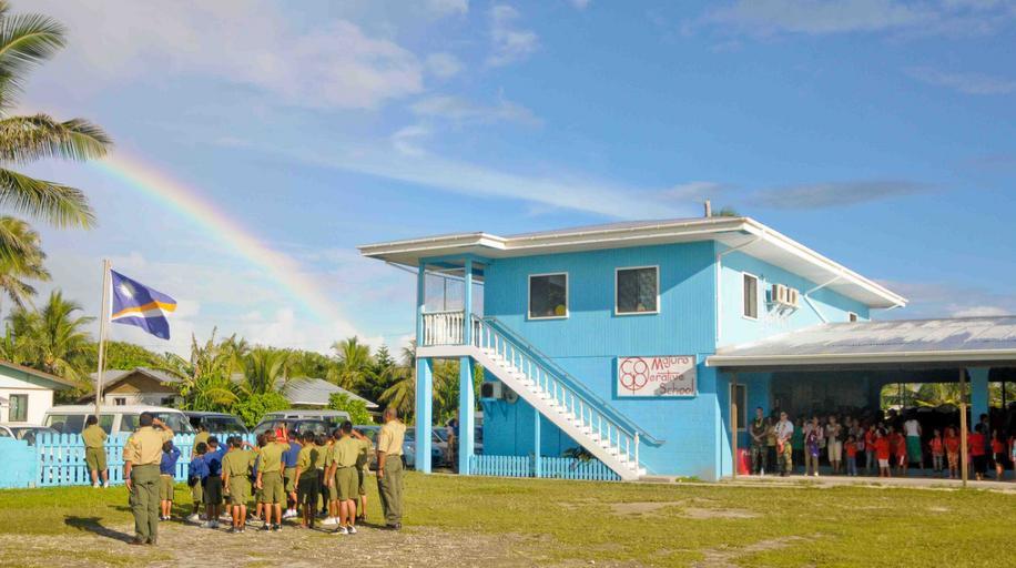 View Original:US_Navy_090914-N-9689V-001_tudents_at_the_Majuro_Cooperative_School_raise_the_Republic_of_Marshall_Islands_flag_at_a_flag_raising_ceremony_during_a_Pacific_Partnership_2009_community_service_project.jpg (4288x2398)