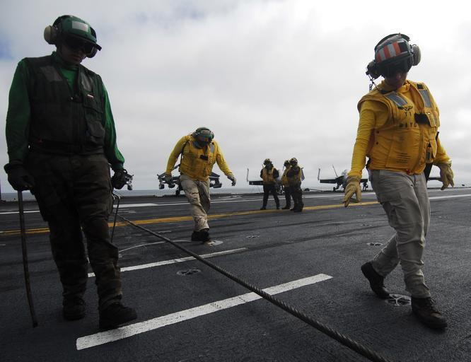 Keywords: US Navy 090919-N-6538W-034 Lt. Jessica Parker, from St. Louis, Mo., and Aviation Boatswain's Mate (Equipment) Airman Recruit Kevin Starr, from Fayetteville, Ark., inspect the integrity of a cross-deck pendant.jpg en PACIFIC OCEAN Sept 19 2009 Lt Jessica Parker from St Louis Mo and Aviation Boatswain's Mate Equipment Airman Recruit Kevin Starr from Fayetteville Ark inspect the integrity of a cross-deck pendant on the flight deck aboard the aircraft carrier USS John C Stennis CVN 74 John C Stennis is underway conducting fleet replacement squadron carrier qualifications U S Navy photo by Mass Communication Specialist 3rd Class Walter M Wayman/Released 2009-09-19 090919-N-6538W-034 Navy http //www navy mil/view_image asp id 76369 U S Navy photo by Mass Communication Specialist 3rd Class Walter M Wayman PD-USGov-Military-Navy Aviation Boatswain's Mates Aboard USS John C Stennis CVN-74 |