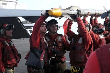 Keywords: US Navy 090927-N-3038W-676 Aviation Ordnanceman assigned to the Black Aces of Strike Fighter Squadron (VFA) 41 remove an AIM-9X Sidewinder missile from the wingtip ordnance mount of an F-A-18 E-F Super Hornet.jpg en INDIAN OCEAN Sept 27 2009 Aviation Ordnanceman assigned to the Black Aces of Strike Fighter Squadron VFA 41 remove an AIM-9X Sidewinder missile from the wingtip ordnance mount of an F/A-18 E/F Super Hornet aboard the aircraft carrier USS Nimitz CVN 68 The Nimitz Carrier Strike Group is on a routine deployment to the U S 5th Fleet area of responsibility U S Navy photo by Mass Communication Specialist 3rd Class John Philip Wagner Jr /Released 2009-09-27 090927-N-3038W-676 Navy http //www navy mil/view_image asp id 76642 U S Navy photo by Mass Communication Specialist 3rd Class John Philip Wagner Jr PD-USGov-Military-Navy AIM-9 Sidewinder Aviation Ordnanceman Aboard USS Nimitz CVN-68 Strike Fighter Squadron 41 United States Navy |