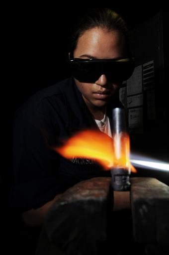 Keywords: US Navy 091017-N-3038W-074 Hull Technician Fireman Gillian Jackson brazes a pipe in the welding shop aboard the aircraft carrier USS Nimitz (CVN 68).jpg en INDIAN OCEAN Oct 17 2009 Hull Technician Fireman Gillian Jackson brazes a pipe in the welding shop aboard the aircraft carrier USS Nimitz CVN 68 The Nimitz Carrier Strike Group is on a routine deployment to the U S 5th Fleet area of responsibility U S Navy photo by Mass Communication Specialist 3rd Class John Phillip Wagner Jr /Released 2009-10-17 091017-N-3038W-074 Navy http //www navy mil/view_image asp id 77405 U S Navy photo by Mass Communication Specialist 3rd Class John Phillip Wagner Jr PD-USGov-Military-Navy Brazing Aboard USS Nimitz CVN-68 |