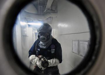 | Keywords: US Navy 091112-N-1062H-023 Mass Communication Specialist Seaman Apprentice Marcos Vazquez mans a hose at the primary fire boundary during a general quarters drill aboard the aircraft carrier USS George Washington (CVN 73).jpg en PACIFIC OCEAN Nov 12 2009 Mass Communication Specialist Seaman Apprentice Marcos Vazquez mans a hose at the primary fire boundary during a general quarters drill aboard the aircraft carrier USS George Washington CVN 73 George Washington the Navy's only permanently forward-deployed aircraft carrier is participating in Annual Exercise ANNUALEX 21G a yearly bilateral exercise with the U S Navy and the Japan Maritime Self-Defense Force U S Navy photo by Mass Communication Specialist Seaman Christopher S Harte/Released 2009-11-12 091112-N-1062H-023 Navy http //www navy mil/view_image asp id 78496 U S Navy photo by Mass Communication Specialist Seaman Christopher S Harte PD-USGov-Military-Navy Aboard USS George Washington CVN-73 Mass Communication Specialist Anti-flash gear |