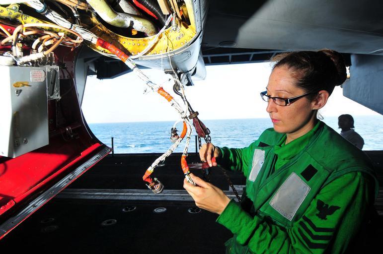 | Keywords: US Navy 091124-N-4053P-002 Aviation Electronics Technician 1st Class Kristina Perham, assigned to the Black Ravens of Electronic Attack Squadron (VAQ) 135, spot ties wiring on an EA-6B Prowler.jpg en GULF OF OMAN Nov 24 2009 Aviation Electronics Technician 1st Class Kristina Perham assigned to the Black Ravens of Electronic Attack Squadron VAQ 135 spot ties wiring on an EA-6B Prowler in the hangar bay of the aircraft carrier USS Nimitz CVN 68 The Nimitz Carrier Strike Group is on a routine deployment to the U S 5th Fleet area of responsibility U S Navy photo by Mass Communication Specialist 3rd Class Matthew Patton/Released 2009-11-24 091124-N-4053P-002 Navy http //www navy mil/view_image asp id 78870 U S Navy photo by Mass Communication Specialist 3rd Class Matthew Patton PD-USGov-Military-Navy Aboard USS Nimitz CVN-68 Electronic Attack Squadron 135 United States Navy |