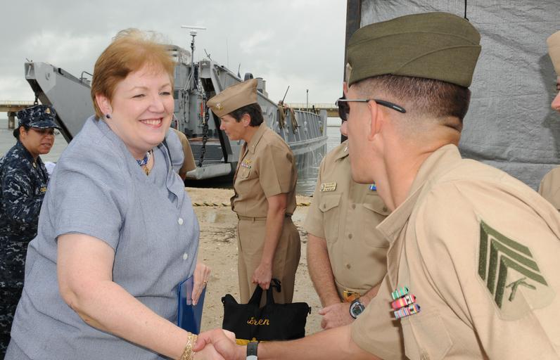 | Keywords: US Navy 091124-N-7353K-024 Sharon Featherstone, U.S. Charge' d' Affaires to Belize, shakes hands with Sgt. Daniel Newman during a ceremony marking the turnover of approximately 39,000 pounds of medical and school supplies.jpg en BELIZE CITY Belize Nov 24 2009 Sharon Featherstone U S Charge' d' Affaires to Belize shakes hands with Sgt Daniel Newman during a ceremony marking the turnover of approximately 39 000 pounds of medical and school supplies text books and toys to the government of Belize and various non-governmental organizations during a Project Handclasp delivery by the amphibious assault ship USS Wasp LHD 1 Project Handclasp transports educational humanitarian and goodwill material overseas on a space-available basis in U S Navy ships Wasp is deployed on Southern Partnership Station-Amphibious part of the Partnership of the Americas maritime strategy U S Navy photo by Mass Communication Specialist 2nd Class Christopher Koons/Released 2009-11-24 091124-N-7353K-024 Navy http //www navy mil/view_image asp id 78918 U S Navy photo by Mass Communication Specialist 2nd Class Christopher Koons PD-USGov-Military-Navy Aboard USS Wasp LHD-1 Southern Partnership Station 2009 Project Handclasp United States Navy |
