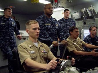 Keywords: US Navy 091207-N-3989D-001 Sailors assigned to the guided-missile submarine USS Florida (SSGN 728) practice skills controlling the boat.jpg en KINGS BAY Ga Dec 7 2009 Sailors assigned to the guided-missile submarine USS Florida SSGN 728 practice skills controlling the boat in the Ships Control Team Trainer at the Trident Training Facility in Kings Bay Ga U S Navy photo by Senior Chief Missile Technician Nicholas Davies/Released 2009-12-07 091207-N-3989D-001 Navy http //www navy mil/view_image asp id 79174 U S Navy photo by Senior Chief Missile Technician Nicholas Davies PD-USGov-Military-Navy USS Florida SSGN-728 Trident Training Facility Maritime navigation simulators Military simulation devices |