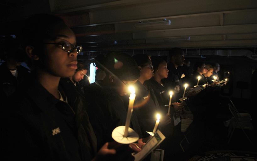 | Keywords: US Navy 091217-N-9928E-180 Sailors participate in a candlelight Christmas service on the forecastle aboard USS John C. Stennis (CVN 74).jpg en PACIFIC OCEAN Dec 17 2009 Sailors participate in a candlelight Christmas service on the forecastle aboard the Nimitz-class aircraft carrier USS John C Stennis CVN 74 John C Stennis is transiting to its homeport of Bremerton Wash after completing fleet replacement squadron qualifications off the coast of Southern California U S Navy photo by Mass Communication Specialist 3rd Class Josue L Escobosa/Released 2009-12-17 091217-N-9928E-180 Navy http //www navy mil/view_image asp id 79488 U S Navy photo by Mass Communication Specialist 3rd Class Josue L Escobosa PD-USGov-Military-Navy Aboard USS John C Stennis CVN-74 |