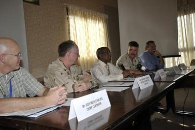Keywords: US Navy 091222-N-3417F-003 Said Omar Moussa, president of Djibouti's Chamber of Commerce, addresses an audience of Djiboutian businessmen and women during Combined Joint Task Force-Horn of Africa's Vendor Day.jpg en DJIBOUTI Dec 22 2009 Said Omar Moussa president of Djibouti's Chamber of Commerce addresses an audience of Djiboutian businessmen and women during Combined Joint Task Force-Horn of Africa's Vendor Day The event helped bridge African companies to the many maintenance service supply and construction contracts that support Camp Lemonnier CJTF-HOA and its down range projects throughout East Africa Seated with Moussa are from left to right Robert Mecklenburg contracting officer for Navy Facility Camp Lemonnier; U S Navy Capt Greg Johnson chief of contracts CJTF-HOA; Moussa; U S Navy Capt William Finn commander of Camp Lemonnier; and Bill Callahan deputy program manager Pacific Architect Engineers Camp Lemonnier U S Navy photo by Mass Communication Specialist 1st Class Larry Foos/released 2009-12-22 091222-N-3417F-003 Navy http //www navy mil/view_image asp id 79526 U S Navy photo by Mass Communication Specialist 1st Class Larry Foos PD-USGov-Military-Navy United States Navy images from Djibouti Sitting people |