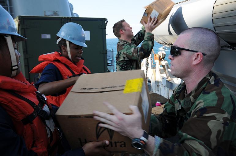 Keywords: US Navy 100118-N-7923C-004 Hospital Corpsman 1st Class Robert Lemon, assigned to Maritime Civil Affairs Team (MCAT) 203, helps load food and medical supplies aboard a rigid hull inflatable boat.jpg en PORT-AU-PRINCE Haiti Jan 18 2010 Hospital Corpsman 1st Class Robert Lemon assigned to Maritime Civil Affairs Team MCAT 203 helps load food and medical supplies aboard a rigid hull inflatable boat aboard the amphibious dock landing ship USS Gunston Hall LSD 44 The supplies are bound for the Killick Haitian Coast Guard Base Gunston Hall arrived in Haiti Jan 18 to begin humanitarian relief operations as part of Operation Unified Response U S Navy photo by Lt j g Rick Chernitzer/Released 2010-01-18 100118-N-7923C-004 Navy http //www navy mil/view_image asp id 80149 U S Navy photo by Lt j g Rick Chernitzer PD-USGov-Military-Navy Aboard USS Gunston Hall LSD-44 |
