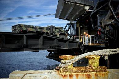 Keywords: US Navy 100118-N-1522S-008 The Military Sealift Command maritime prepositioning ship USNS 1st LT Jack Lummus (T-AK-3011) receives cargo from the U.S. Agency for International Development (USAID) and the U.S. Marine Corps at Blo.jpg en JACKSONVILLE Fla Jan 18 2010 The Military Sealift Command maritime prepositioning ship USNS 1st LT Jack Lummus T-AK-3011 receives cargo from the U S Agency for International Development USAID and the U S Marine Corps at Blount Island Command USAID provided more than 120 pallets of relief supplies and 400 bottles of propane The Marine Corps cargo included vehicles and heavy equipment to support the distribution of supplies water production water distribution and fuel distribution The Marines also provided limited earth-moving equipment electrical-producing equipment limited lumber building materials and medical supplies The ship and supplies are bound for Haiti as part of Operation Unified Response following a 7 0 magnitude earthquake near Port-au-Prince on Jan 12 2010 U S Navy photo by Mass Communication Specialist 1st Class Leah Stiles/Released 2010-01-18 100118-N-1522S-008 Navy http //www navy mil/view_image asp id 80217 U S Navy photo by Mass Communication Specialist 1st Class Leah Stiles PD-USGov-Military-Navy Images from US Navy location Jacksonville Florida USNS 1st Lt Jack Lummus T-AK-3011 |