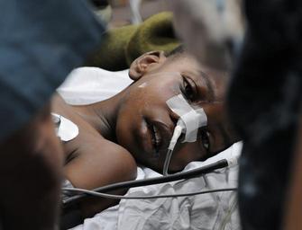 Keywords: US Navy 100119-N-4995K-125 Medical professionals aboard the Military Sealift Command hospital ship USNS Comfort (T-AH 20) treat a six-year-old Haitian boy in the casualty receiving room.jpg en ATLANTIC OCEAN Jan 19 2010 Medical professionals aboard the Military Sealift Command hospital ship USNS Comfort T-AH 20 treat a six-year-old Haitian boy in the casualty receiving room aboard the 1 000-bed hospital ship The boy was transferred to Comfort by helicopter from the aircraft carrier USS Carl Vinson CVN 70 for treatment of an injury to his bladder and a hip fracture during an earthquake that struck Haiti on Jan 12 The boy is in the intensive care unit aboard Comfort in stable condition Comfort is supporting Operation Unified Response a joint operation providing humanitarian assistance to Haiti U S Navy photo by Mass Communication Specialist 2nd Class Chelsea Kennedy/Released 2010-01-19 100119-N-4995K-125 Navy http //www navy mil/view_image asp id 80273 U S Navy photo by Mass Communication Specialist 2nd Class Chelsea Kennedy PD-USGov-Military-Navy Aboard USS Carl Vinson CVN-70 |