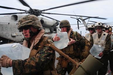 Keywords: US Navy 100119-N-7508R-040 Marines carry bottles of water to load onto a CH-53E Super Stallion helicopter aboard USS Bataan (LHD 5).jpg en PORT-AU-PRINCE Haiti Jan 19 2010 Marines assigned to the 22nd Marine Expeditionary Unit 22nd MEU carry bottles of water to load onto a CH-53E Super Stallion helicopter aboard the multi-purpose amphibious assault ship USS Bataan LHD 5 Bataan along with amphibious dock landing ships USS Fort McHenry LSD 43 USS Gunston Hall LSD 44 and USS Carter Hall LSD 50 are participating in Operation Unified Response and are providing military support capabilities to civil authorities to help stabilize and improve the situation in Haiti in the wake of the 7 0 magnitude earthquake on Jan 12 2010 U S Navy photo by Mass Communication Specialist 2nd Class Julio Rivera/Released 2010-01-19 100119-N-7508R-040 Navy http //www navy mil/view_image asp id 80304 U S Navy photo by Mass Communication Specialist 2nd Class Julio Rivera PD-USGov-Military-Navy Aboard USS Bataan LHD-5 CH-53E US Marine Corps Aboard USS Gunston Hall LSD-44 |