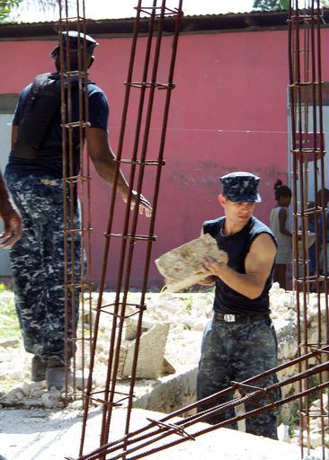 | Keywords: US Navy 100127-N-0924R-007 Navy Chaplain Lt. Devon Foster and Gunner's Mate 3rd Class Nicholas Bartlett remove rubble from a home in Neply during a community relations project.jpg en NEPLY Haiti Jan 27 2010 Navy Chaplain Lt Devon Foster left and Gunner's Mate 3rd Class Nicholas Bartlett both assigned to the multi-purpose amphibious assault ship USS Bataan LHD 5 remove rubble from a home in Neply during a community relations project Bataan is on station in Haiti along with the amphibious dock landing ships USS Fort McHenry LSD 43 USS Gunston Hall LSD 44 and USS Carter Hall LSD 50 as the Bataan Amphibious Relief Mission supporting Operation Unified Response a joint operation providing military support capabilities to civil authorities to help stabilize and improve the situation in Haiti following a 7 0 magnitude earthquake that devastated the island nation on Jan 12 2010 U S Navy photo by Mass Communication Specialist 3rd Class Cory Rose/Released 2010-01-27 100127-N-0924R-007 Navy http //www navy mil/view_image asp id 81017 U S Navy photo by Mass Communication Specialist 3rd Class Cory Rose PD-USGov-Military-Navy Aboard USS Bataan LHD-5 Gunner's Mate Aboard USS Gunston Hall LSD-44 United States Navy chaplains |