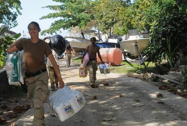 Keywords: US Navy 100127-N-1831S-110 Gunner's Mate 3rd Class Kristen Luna, assigned to Beach Master Unit (BMU) 2, carries baby supplies to the Killick Haitian Coast Guard Base during a humanitarian supply delivery.jpg en KILLICK Haiti Jan 27 2010 Gunner's Mate 3rd Class Kristen Luna assigned to Beach Master Unit BMU 2 carries baby supplies to the Killick Haitian Coast Guard Base during a humanitarian supply delivery BMU-2 is embarked aboard the amphibious dock landing ship USS Gunston Hall LSD 44 Gunston Hall is supporting Operation Unified Response following a 7 0 magnitude earthquake that caused severe damage in Haiti on Jan 12 U S Navy photo by Mass Communication Specialist 3rd Class Ash Severe/Release 2010-01-27 100127-N-1831S-110 Navy http //www navy mil/view_image asp id 81278 U S Navy photo PD-USGov-Military-Navy Aboard USS Gunston Hall LSD-44 Gunner's Mate |