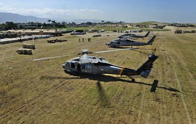 Keywords: US Navy 100128-N-5345W-108 H-60 Sea Hawk helicopters from various U.S. Navy squadrons prepare in the landing zone area at Aerodome de Jacmel.jpg en PORT-AU-PRINCE Haiti Jan 28 2010 H-60 Sea Hawk helicopters from various U S Navy squadrons prepare in the landing zone area at Aerodome de Jacmel an airport in Port-au-Prince to load humanitarian aid for delivery at multiple distribution sites throughout Haiti The multi-purpose amphibious assault ship USS Bataan LHD 5 and the amphibious dock landing ships USS Fort McHenry LSD 43 USS Gunston Hall LSD 44 and USS Carter Hall LSD 50 are participating in Operation Unified Response as the Bataan Amphibious Relief Mission by providing military support capabilities to civil authorities to help stabilize and improve the situation in Haiti in the aftermath of a 7 0 magnitude earthquake on Jan 12 2010 U S Navy photo by Mass Communication Specialist 2nd Class Kristopher Wilson/Released 2010-01-28 100128-N-5345W-108 Navy http //www navy mil/view_image asp id 81037 U S Navy photo by Mass Communication Specialist 2nd Class Kristopher Wilson PD-USGov-Military-Navy Aboard USS Bataan LHD-5 Aboard USS Gunston Hall LSD-44 |