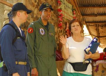 Keywords: US Navy 100130-N-1092P-305 Capt. Sam Howard, commanding officer of the amphibious assault ship USS Bataan (LHD-5), speaks with Lifeline Christian Mission co-founder Gretchen DeVoe in Grand Goave, Haiti.jpg en Grand Goave Haiti Jan 30 2010 Capt Sam Howard commanding officer of the amphibious assault ship USS Bataan LHD-5 speaks with Lifeline Christian Mission co-founder Gretchen DeVoe in Grand Goave Haiti The DeVoes have been active in community outreach in this area for more than 25 years Sailors are providing medical care for Haitians at the clinic built by Lifeline Christian Ministries and are clearing debris and rubble Bataan is supporting Operation Unified Response following a 7 0 magnitude earthquake that caused severe damage in Haiti on Jan 12 U S Navy photo by Mass Communication Specialist Seaman Stuart Phillips/Released 2010-01-30 100130-N-1092P-305 Navy http //www navy mil/view_image asp id 81140 U S Navy photo by Mass Communication Specialist Seaman Stuart Phillips PD-USGov-Military-Navy Aboard USS Bataan LHD-5 |