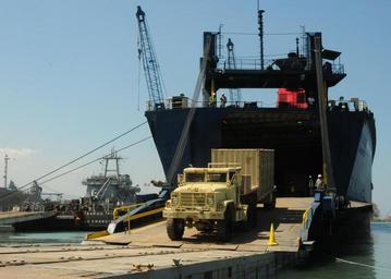 Keywords: US Navy 100220-N-9643W-116 Service members conducting joint logistics over the shore operations at the main seaport in Port-au-Prince, Haiti off-load construction vehicles and equipment.jpg en PORT-AU-PRINCE Haiti Feb 20 2010 Service members conducting joint logistics over the shore operations at the main seaport in Port-au-Prince Haiti off-load construction vehicles and equipment assigned to the U S Army 7th Sustainment Brigade from the British-flagged Crowley Shipper Several U S and international military and non-governmental agencies are conducting humanitarian and disaster relief operations as part of Operation Unified Response after a 7 0-magnitude earthquake caused severe damage in and around Port-au-Prince Haiti Jan 12 U S Navy photo by Mass Communication Specialist 2nd Class Kim Williams/Released 2010-02-20 100220-N-9643W-116 Navy http //www navy mil/view_image asp id 82196 U S Navy photo by Mass Communication Specialist 2nd Class Kim Williams PD-USGov-Military-Navy Images from US Navy location Port-au-Prince Haiti Joint Logistics Over The Shore 2010 Haiti earthquake relief efforts in Port-au-Prince 20100220 M939 Truck Crowley Shipper ship 1980 |