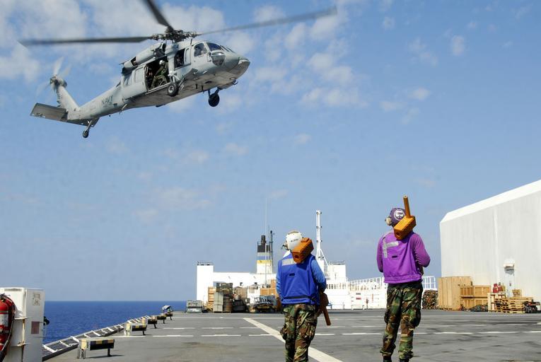 Keywords: US Navy 100222-N-4047W-173 Sailors assigned to Helicopter Sea Combat Squadron (HSC) 28, embarked aboard the Military Sealift Command hospital ship USNS Comfort (T-AH 20).jpg en CARIBBEAN SEA Feb 22 2010 Sailors assigned to Helicopter Sea Combat Squadron HSC 28 embarked aboard the Military Sealift Command hospital ship USNS Comfort T-AH 20 prepare for the landing of an MH-60S Sea Hawk helicopter during an underway replenishment off the coast of Haiti Comfort temporarily left Haiti to re-supply but will return to continue supporting Operation Unified Response U S Navy photo by Mass Communication Specialist 2nd Class Shannon Warner/Released 2010-02-22 100222-N-4047W-173 Navy http //www navy mil/view_image asp id 82298 U S Navy photo by Mass Communication Specialist 2nd Class Shannon Warner PD-USGov-Military-Navy Images from US Navy location Caribbean Sea Aboard USNS Comfort T-AH-20 Helicopter Sea Combat Squadron 28 United States Navy |