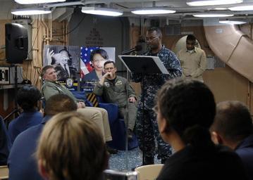Keywords: US Navy 100222-N-1947A-010 Culinary Specialist 1st Class Marland Smith recites Martin Luther King Jr.'s.jpg en PACIFIC OCEAN Feb 22 2010 Culinary Specialist 1st Class Marland Smith recites Martin Luther King Jr 's I Have a Dream speech during a Black History Month celebration aboard the amphibious assault ship USS Makin Island LHD 8 Makin Island the Navy's newest amphibious assault ship is underway off the coast of Southern California conducting Ship Self Defense System SSDS operational testing and evaluations U S Navy photo by Mass Communication Specialist 2nd Class Kellie Arakawa/Released 2010-02-22 100222-N-1947A-010 Navy http //www navy mil/view_image asp id 82448 U S Navy photo by Mass Communication Specialist 2nd Class Kellie Arakawa PD-USGov-Military-Navy Aboard USS Makin Island LHD-8 Black History Month |