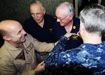 | Keywords: US Navy 100310-N-6854D-003 Capt. Roy J. Kelley, commander of Carrier Air Wing (CVW) 7, and Capt. Dee L. Mewbourne, commanding officer of the aircraft carrier USS Dwight D. Eisenhower (CVN 69) present Neil Armstrong, the first m.jpg en NORTH ARABIAN GULF March 10 2010 Capt Roy J Kelley commander of Carrier Air Wing CVW 7 and Capt Dee L Mewbourne commanding officer of the aircraft carrier USS Dwight D Eisenhower CVN 69 present Neil Armstrong the first man to walk on the moon with his Navy Astronaut wings in a ceremony aboard the ship as fellow astronaut Jim Lovell commander of Apollo 13 looks on The event took place during Legends of Aerospace Tour sponsored by Morale Entertainment Dwight D Eisenhower is on a six-month deployment as part of the on-going rotation of forward-deployed forces to support maritime security operations U S Navy photo by Mass Communication Specialist 2nd Class Jon Dasbach/Released 2010-03-10 100310-N-6854D-003 Navy http //www navy mil/view_image asp id 83063 U S Navy photo by Mass Communication Specialist 2nd Class Jon Dasbach PD-USGov-Military-Navy Aboard USS Dwight D Eisenhower CVN-69 Roy J Kelley Jim Lovell Neil Armstrong Dee L Mewbourne |