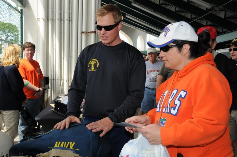 | Keywords: US Navy 100315-N-5366K-068 Aircrew Survival Equipmentman 1st Class Thomas Kinn shows a spectator his parachute after the team performed during the opening ceremony of a Pittsburgh Pirates baseball game at McKechnie Field.jpg en BRADENTON Fla March 15 2010 Aircrew Survival Equipmentman 1st Class Thomas Kinn assigned to the Navy Parachute Team the Leap Frogs shows a spectator his parachute after the team performed during the opening ceremony of a Pittsburgh Pirates baseball game at McKechnie Field in Bradenton Fla during Tampa Bay Navy Week Navy Weeks are designed to show Americans the investment they have made in their Navy and increase awareness in cities that do not have a significant Navy presence U S Navy photo by Mass Communication Specialist 2nd Class Michelle Kapica/Released 2010-03-15 100315-N-5366K-068 Navy http //www navy mil/view_image asp id 83273 U S Navy photo by Mass Communication Specialist 2nd Class Michelle Kapica PD-USGov-Military-Navy McKechnie Field Images from US Navy location BRADENTON Fla Aircrew Survival Equipmentman Tampa Bay Navy Week |