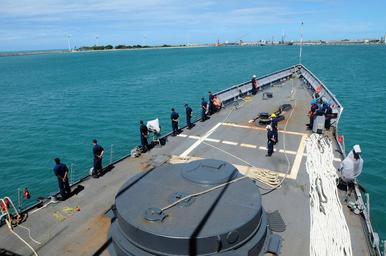 Keywords: US Navy 100421-N-9301W-336 Sailors man the rails as the guided-missile frigate USS Klakring (FFG 42) arrives at Fortaleza, Brazil for a port visit. Klakring is on a six-month deployment to Latin America and the Caribbean as par.jpg en FORTALEZA BRAZIL April 21 2010 Sailors man the rails as the guided-missile frigate USS Klakring FFG 42 arrives at Fortaleza Brazil for a port visit Klakring is on a six-month deployment to Latin America and the Caribbean as part of Southern Seas 2010 a U S Southern Command-directed operation that provides U S and international forces the opportunity to operate in a mulit-national environment U S Navy photo by Mass Communication Specialist 1st Class Darryl Wood/Released 2010-04-21 100421-N-9301W-336 Navy http //www navy mil/view_image asp id 84644 U S Navy photo by Mass Communication Specialist 1st Class Darryl Wood PD-USGov-Military-Navy USS Klakring FFG-42 Manning the rail in the United States Navy |
