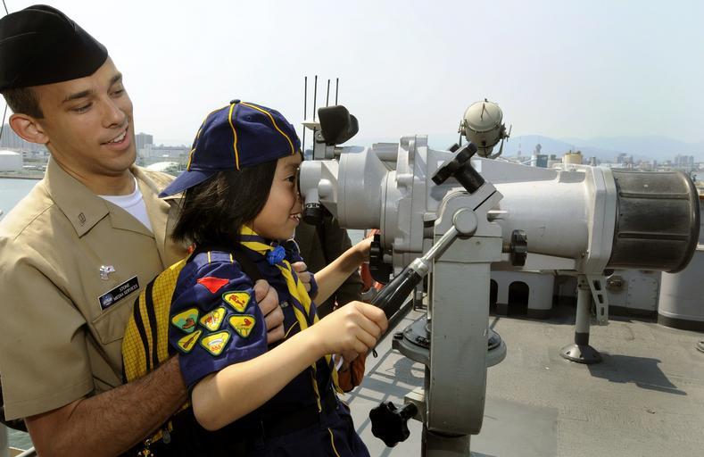 Keywords: US Navy 100502-N-7280V-222 Mass Communication Specialist Seaman Brian Stone helps a boy scout see through the.jpg en HAKATA Japan May 2 2010 Mass Communication Specialist Seaman Brian Stone a Sailor assigned to the U S 7th Fleet command ship USS Blue Ridge LCC 19 helps a boy scout see through the big eyes binoculars on the ship's bridge wing The visit included a tour of the ship hands-on firefighting demonstrations and traditional navy knot tying U S Navy photo by Mass Communication Specialist 3rd Class Daniel Viramontes/Released 2010-05-02 100502-N-7280V-222 Navy http //www navy mil/view_image asp id 84952 U S Navy photo by Mass Communication Specialist 3rd Class Daniel Viramontes PD-USGov-Military-Navy Aboard USS Blue Ridge LCC-19 Mass Communication Specialist |
