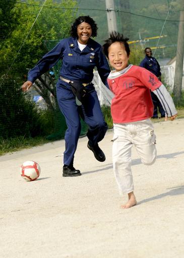 Keywords: US Navy 100502-N-0864H-232 Chief Yeoman Roszetta Dean plays kickball with a child at the Kodomono-ie Children's Home.jpg en HAKATA Japan May 2 2010 Chief Yeoman Roszetta Dean assigned to U S 7th Fleet staff embarked aboard the U S 7th Fleet command ship USS Blue Ridge LCC 19 plays kickball with a child at the Kodomono-ie Children's Home during a community relations project Blue Ridge is in Hakata on a scheduled port visit U S Navy photo by Mass Communication Specialist 3rd Class Fidel C Hart/Released 2010-05-02 100502-N-0864H-232 Navy http //www navy mil/view_image asp id 84999 U S Navy photo by Mass Communication Specialist 3rd Class Fidel C Hart PD-USGov-Military-Navy Aboard USS Blue Ridge LCC-19 Yeoman United States Navy Military people of the United States with children |