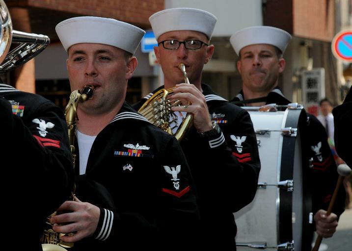 Keywords: US Navy 100503-N-5086M-100 Musician 3rd Class David Drescher, Musicians 2nd Class Anthony Smouse and Dirk Denton perform with the U.S. 7th Fleet Band.jpg en FUKUOKA Japan May 3 2010 Musician 3rd Class David Drescher left Musicians 2nd Class Anthony Smouse and Dirk Denton perform with the U S 7th Fleet Band during the annual Dontaku Parade in Fukuoka Japan The band is embarked aboard the U S 7th Fleet command ship USS Blue Ridge LCC 19 which is completing a spring deployment in the U S 7th Fleet area of responsibility U S Navy photo by Mass Communication Specialist 2nd Class Greg Mitchell/Released 2010-05-03 100503-N-5086M-100 Navy http //www navy mil/view_image asp id 85009 U S Navy photo by Mass Communication Specialist 2nd Class Greg Mitchell PD-USGov-Military-Navy Aboard USS Blue Ridge LCC-19 Hakata Dontaku |