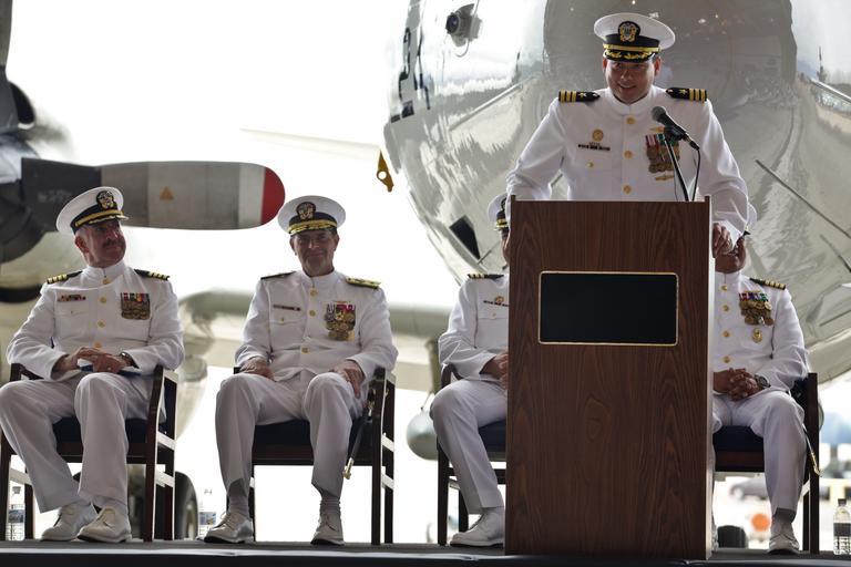 Keywords: US Navy 100513-M-7045P-013 Cmdr. Stephen L. Newlund addresses the audience during a change of command ceremony at Marine Corps Air Station Kaneohe Bay.jpg en KANEOHE BAY Hawaii May 13 2010 Cmdr Stephen L Newlund commanding officer of Patrol Squadron VP 4 addresses the audience during a change of command ceremony at Marine Corps Air Station Kaneohe Bay Newlund relieved Cmdr Jack S Thomas U S Marine Corps photo by Lance Cpl Orlando Perez/Released 2010-05-13 100513-M-7045P-013 Navy http //www navy mil/view_image asp id 85515 U S Marine Corps photo by Lance Cpl Orlando Perez PD-USGov-Military-Navy Marine Corps Air Station Kaneohe Bay Change of command