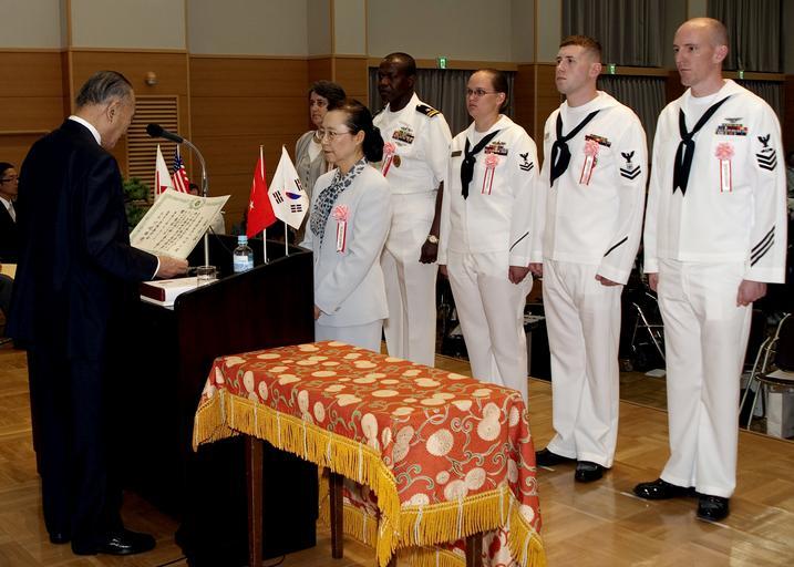 | Keywords: US Navy 100522-N-5019M-002 Sailors and DoD civilians receive Zenkokai or Good Conduct Awards from Kohsho Kawamura, president of the Zenkokai Selection Association, at the Meiji-Jingu Shrine in Tokyo.jpg en TOKYO May 22 2010 Sailors and DoD civilians receive Zenkokai or Good Conduct Awards from Kohsho Kawamura president of the Zenkokai Selection Association at the Meiji-Jingu Shrine in Tokyo Ten individuals and five organizations were honored with the award for their public service in the Japanese community U S Navy photo by Mass Communication Specialist Seaman Mike R Mulcare/Released 2010-05-22 100522-N-5019M-002 Navy http //www navy mil/view_image asp id 85765 U S Navy photo by Mass Communication Specialist Seaman Mike R Mulcare PD-USGov-Military-Navy Images from US Navy location TOKYO Military people in 2010 Sailor suits Sailor collars Awards of Japan |