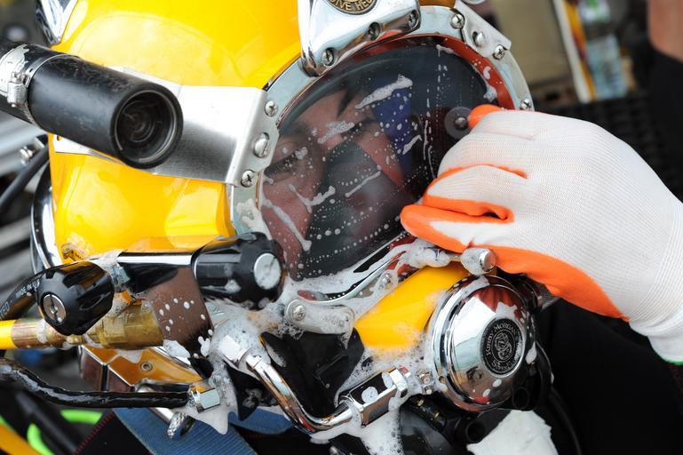 Keywords: US Navy 100527-N-0413B-008 Navy Diver 2nd Class Jessie Trujillo, assigned to Mobile Diving Salvage Unit (MDSU) 1, wipes off cleaning soap from his MK-3 dive helmet glass during pre-dive checks during the Joint POW-MIA Personnel.jpg en QUYNH PHUONG Vietnam May 27 2010 Navy Diver 2nd Class Jessie Trujillo assigned to Mobile Diving Salvage Unit MDSU 1 wipes off cleaning soap from his MK-3 dive helmet glass during pre-dive checks during the Joint POW/MIA Personnel Accounting Command JPAC recovery mission in Quynh Phuong Vietnam The mission of the JPAC is to achieve the fullest possible accounting of all Americans missing as a result of the nation's past conflicts U S Navy photo by Mass Communication Specialist 1st Class Anderson Bomjardim/Released 2010-05-27 100527-N-0413B-008 Navy http //www navy mil/view_image asp id 86219 U S Navy photo by Mass Communication Specialist 1st Class Anderson Bomjardim PD-USGov-Military-Navy Images from US Navy location QUYNH PHUONG Vietnam United States Navy Divers |