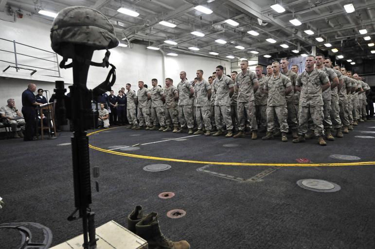 Keywords: US Navy 100530-N-7364R-041 Marines attend a Memorial Day Ceremony in the turnstyle space aboard the amphibious dock landing ship USS Gunston Hall (LSD 44).jpg en MEDITERRANEAN SEA May 30 2010 Marines attend a Memorial Day Ceremony in the turnstyle space aboard the amphibious dock landing ship USS Gunston Hall LSD 44 U S Navy photo by Mass Communication Specialist 2nd Class Felicito Rustique/Released 2010-05-30 100530-N-7364R-041 Navy http //www navy mil/view_image asp id 86304 U S Navy photo by Mass Communication Specialist 2nd Class Felicito Rustique PD-USGov-Military-Navy Aboard USS Gunston Hall LSD-44 M16 rifle Soldier's Cross |