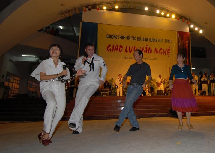 Keywords: US Navy 100608-N-0209M-001 Musician 3rd Class Anton Dupreez dances with Vietnamese concert attendees at a U.S. Pacific Fleet Band concert at the Nha Van Hoa Lao Dong cultural center in Quy Nhon, Vietnam.jpg en QUY NHON Vietnam June 5 2010 Musician 3rd Class Anton Dupreez dances with Vietnamese concert attendees at a U S Pacific Fleet Band concert at the Nha Van Hoa Lao Dong cultural center in Quy Nhon Vietnam supporting Pacific Partnership 2010 The Military Sealift Command hospital ship USNS Mercy T-AH 19 is in Vietnam conducting Pacific Partnership 2010 the fifth in a series of annual U S Pacific Fleet humanitarian and civic assistance endeavors to strengthen regional partnerships U S Navy photo by Mass Communication Specialist 3rd Class Joshua Martin/Released 2010-06-05 100608-N-0209M-001 Navy http //www navy mil/view_image asp id 86892 U S Navy photo by Mass Communication Specialist 3rd Class Joshua Martin PD-USGov-Military-Navy Aboard USNS Mercy T-AH-19 People of Quy Nhon Relations of the United States and Vietnam |