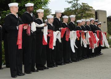 Keywords: US Navy 100614-N-4649C-002 Sailors from Trident Training Facility (TTF) hold strips of 14 American flags ready to be burned during a flag retirement ceremony at Naval Base Kitsap, Wash.jpg en SILVERDALE Wash June 14 2010 Sailors from Trident Training Facility TTF hold strips of 14 American flags ready to be burned during a flag retirement ceremony at Naval Base Kitsap Wash The flags were first cut up separating the red and white stripes from the field of blue and white stars before being burned and officially retired U S Navy photo by Mass Communication Specialist 2nd Class Chantel M Clayton/Released 2010-06-14 100614-N-4649C-002 Navy http //www navy mil/view_image asp id 87047 U S Navy photo by Mass Communication Specialist 2nd Class Chantel M Clayton PD-USGov-Military-Navy People at Naval Base Kitsap Flag Retirement Ceremony |