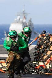 | Keywords: US Navy 100721-N-3659B-298 Logistics Specialist 3rd Class Brian Becker and Logistics Specialist 3rd Class James Heckwine run to safety after connecting a cargo pendant to an MH-60S Sea Hawk helicopter.jpg  en PACIFIC OCEAN July 21 2010 Logistics Specialist 3rd Class Brian Becker front from Salt Lake City and Logistics Specialist 3rd Class James Heckwine from Decatur Ill run to safety after connecting a cargo pendant to an MH-60S Sea Hawk helicopter assigned to the Eightballers of Helicopter Sea Combat Squadron HSC 8 during a vertical replenishment aboard the aircraft carrier USS Ronald Reagan CVN 76 Ronald Reagan is underway participating in Rim of the Pacific RIMPAC 2010 a biennial multinational exercise designed to strengthen regional partnerships and improve multinational interoperability U S Navy photo by Mass Communication Specialist 2nd Class Joseph M Buliavac/Released 2010-07-21 100721-N-3659B-298 Navy http //www navy mil/view_image asp id 89101 U S Navy photo by Mass Communication Specialist 2nd Class Joseph M Buliavac PD-USGov-Military-Navy Helicopters at USS Ronald Reagan CVN-76 MH-60S Seahawk Helicopter Sea Combat Squadron 8 United States Navy USS Ronald Reagan CVN-76 underway replenishment |